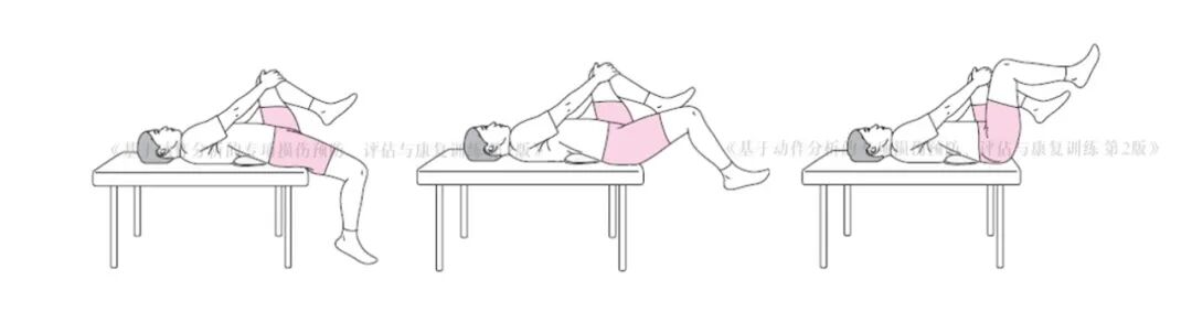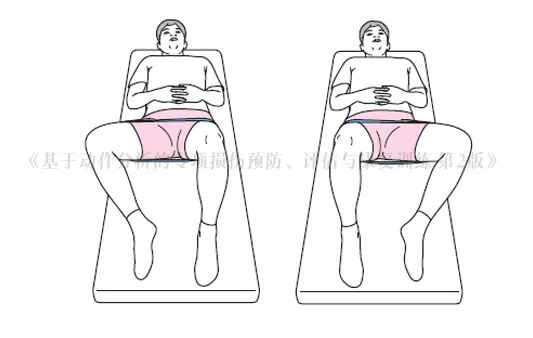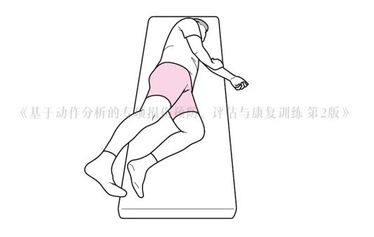 在腰椎前弯位置垫上毛巾,抱住另外一侧的腿,固定骨盆。收紧腹部,运动侧腿(右)的髋关节从最大限度伸展到屈曲。