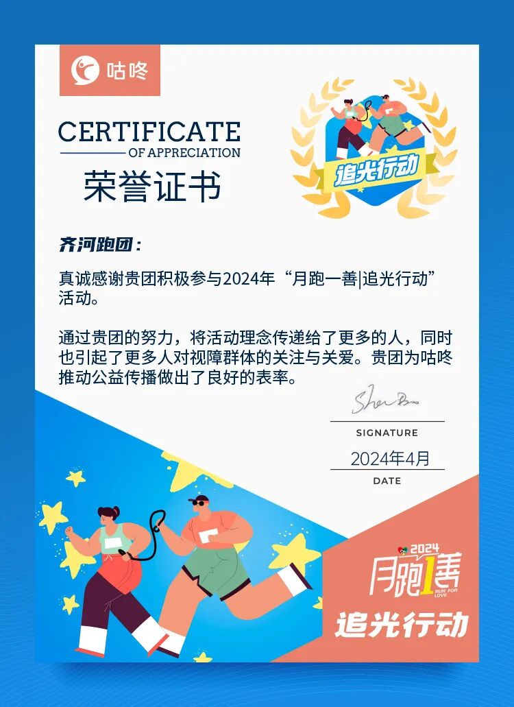1、根据上传的活动照片质量及部分视频投稿(评选维度:拍摄质量和创意、队伍整齐度、与追光行动主题的相关性),以下跑团在本次活动中获奖: